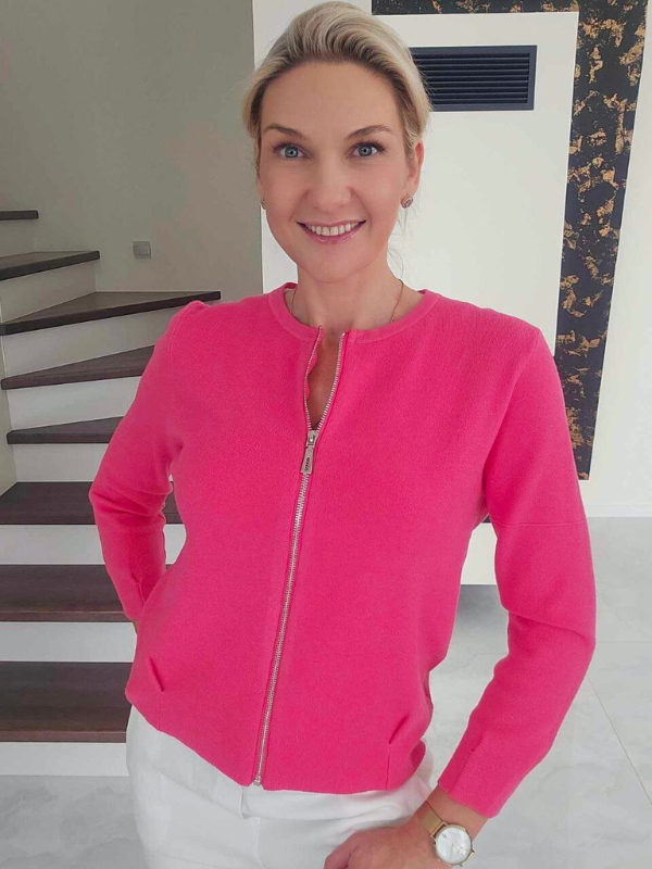 Ryškios fuksijos spalvos megztinis su užtrauktuku – stilingas ir patogus pasirinkimas kasdieniam bei tvarkingam įvaizdžiui. Klasikinis siluetas dailiai priglunda, o užtrauktukas suteikia praktiškumo ir leidžia lengvai pritaikyti megztinį įvairiems deriniams.