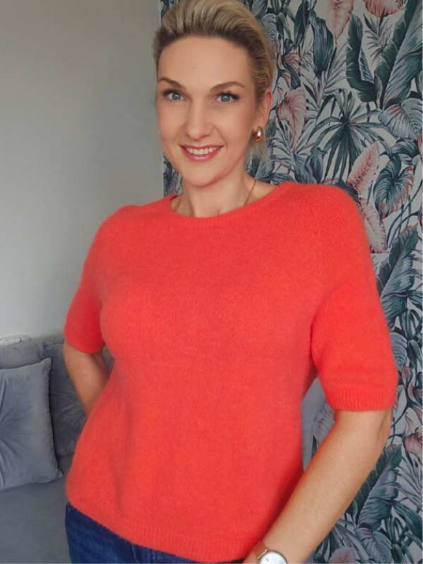 Ryškios oranžinės spalvos premium kokybės alpaka megztukas – stilingas ir jaukus pasirinkimas, suteikiantis įvaizdžiui energijos ir šilumos. Klasikinis siluetas su trumpomis rankovėmis subtiliai pabrėžia figūrą ir leidžia megztuką lengvai derinti kasdieniams bei tvarkingiems deriniams.