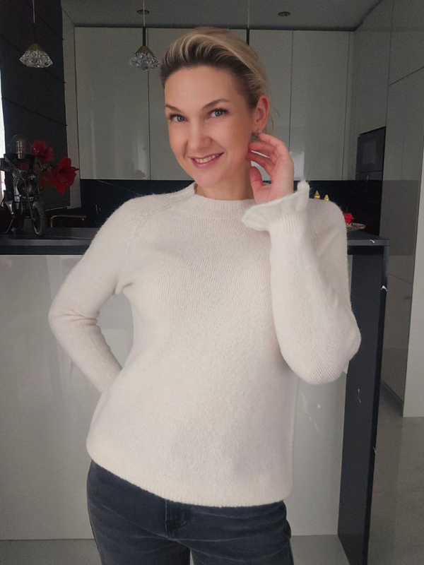 Elegantiškas ir itin švelnus pieno baltumo baby alpakos megztinis, skirtas komfortiškam ir stilingam kasdieniam dėvėjimui.