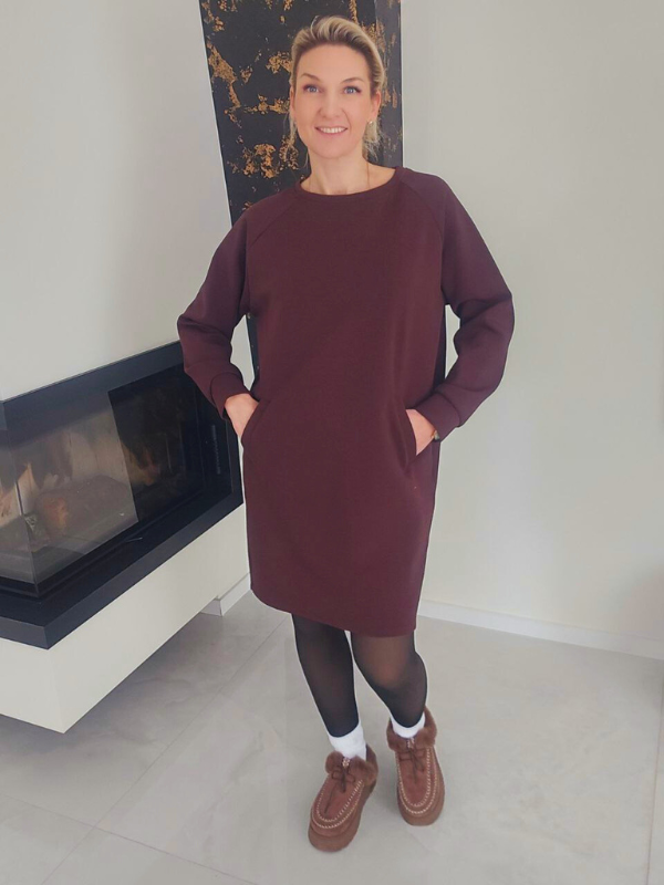 Suknelė lengvai derinama su sportiniais bateliais ar laisvalaikio avalyne, todėl tiks tiek miesto pasivaikščiojimams, tiek jaukiam savaitgalio stiliui. Praktiškos kišenės suteikia papildomo patogumo.