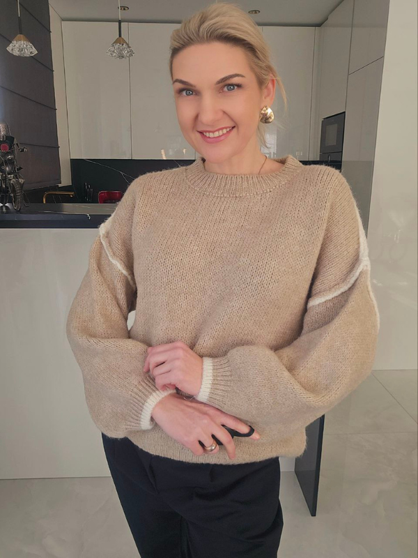 Itin švelnus šviesaus smėlio spalvos megztukas su vilna – jaukus ir elegantiškas pasirinkimas kasdienai. Megztukas malonus liesti, visiškai nekandantis, lengvas ir šiltas – puikiai tiks vėsesniam sezonui.